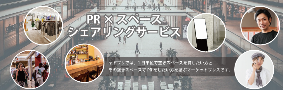 Yadopuriでは、誰でも簡単に1日単位から、目的に合った場所をPRの場に利用することができます。